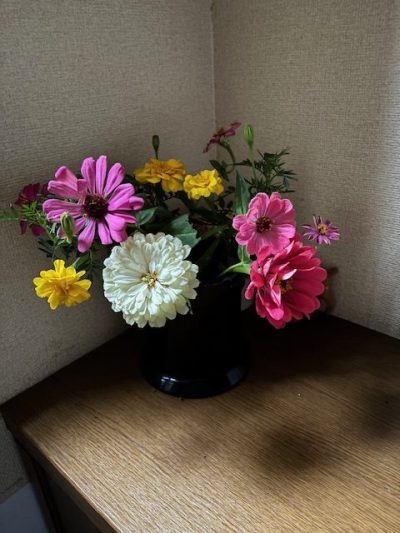 剪定した花をいくつか頂いて花瓶に投げ入れしてみました。