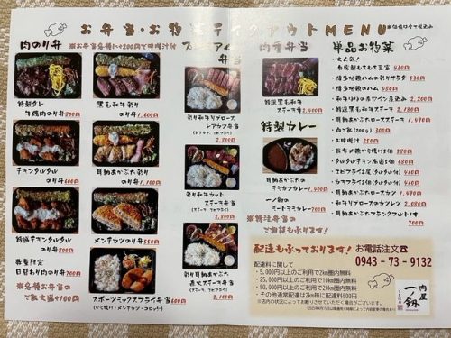 『肉屋一の剱』耳納あかぶたや和牛をメインにしていて、テイクアウトも豊富。