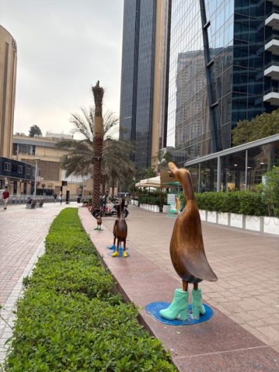 ドバイ ボードウォークの靴を履いた鳥のオブジェ