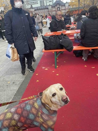 最後は東京駅前のクリスマスマーケットでホットチョコレートとプレッツェルをほおばり大満足!