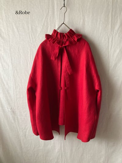 くすみのない赤を探し求めて、出会った美しいポピーレッドは少し厚手のリネンツイル。