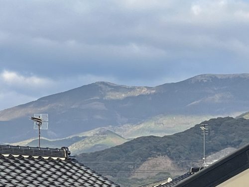 近くの天山は正月は雪を纏ったらしいのですが、今は緑がかって見えます。