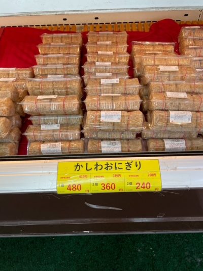 朝倉市にあるJAのスーパーの人気商品『かしわのおにぎり』を調達して、早目のご帰還。