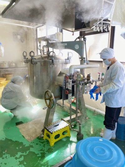 近年は、町内のオーガニックショップから頼まれ、大豆を茹でる事もやっています。