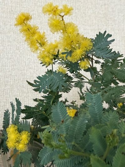 先日、花屋さんに一枝だけ残っていたミモザを見つけて