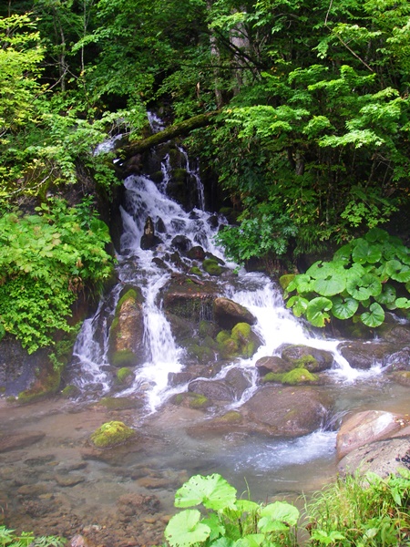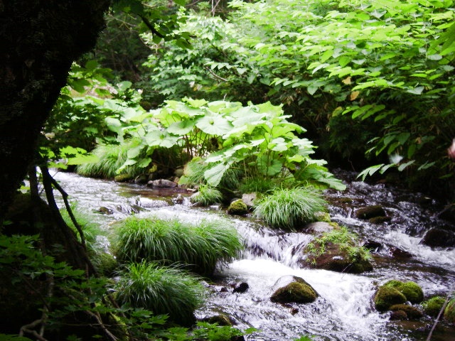 大きさに育ち、渓流のせせらぎと溶け合って、ひんやり涼しげな水辺の風景に出会う事が出来ました。