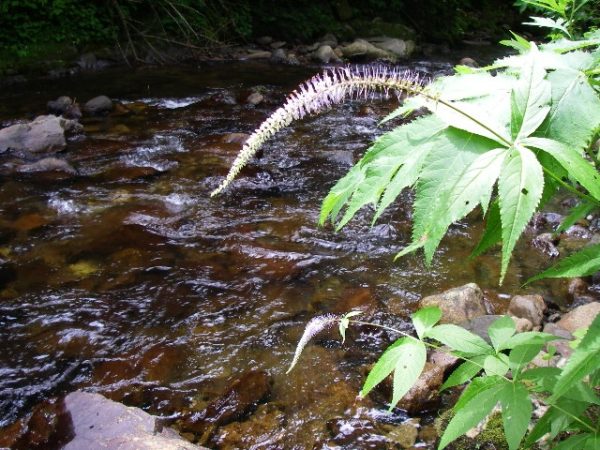 こちらの川でも、色とりどりのトラノオやヤマアジサイが至る所に咲いていました。また、写真にはありませんが、ホタルブクロやヤマウドの花も見る事が出来ました。