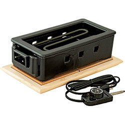 シーズヒーター(100V・1200W)を熱源に、輻射熱特有の加熱機能を最大限に活かしました。焙りもの・焼きものに最適です。焼き鳥や焼肉はもちろん、焼きたてのお餅も卓上で味わえて絶品です。