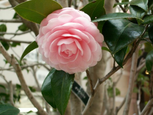紅い藪椿と違って、ピンクの八重咲きの花びらが可憐な中に、エレガントな雰囲気を持っています。